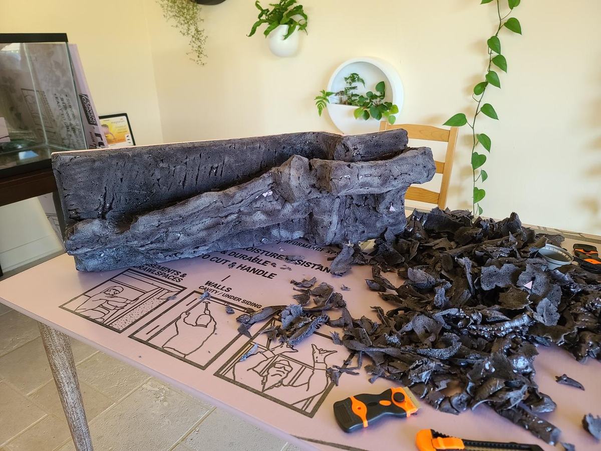After watching a handful of videos, I decided on building the backdrop from foam board insulation, coated with expanding foam, and then silicone and coconut fibers. I found a 29 gallon aquarium tank that I liked well enough (I do wish it was a bit taller). I bought a pump, tubing, terrarium dirt, aquarium gravel, silicone, expanding foam, coconut fibers, a misting system, sphagnum moss, leaf litter, some spider wood, lava rocks, sponge filter, substrate barrier, and a few other minor items.