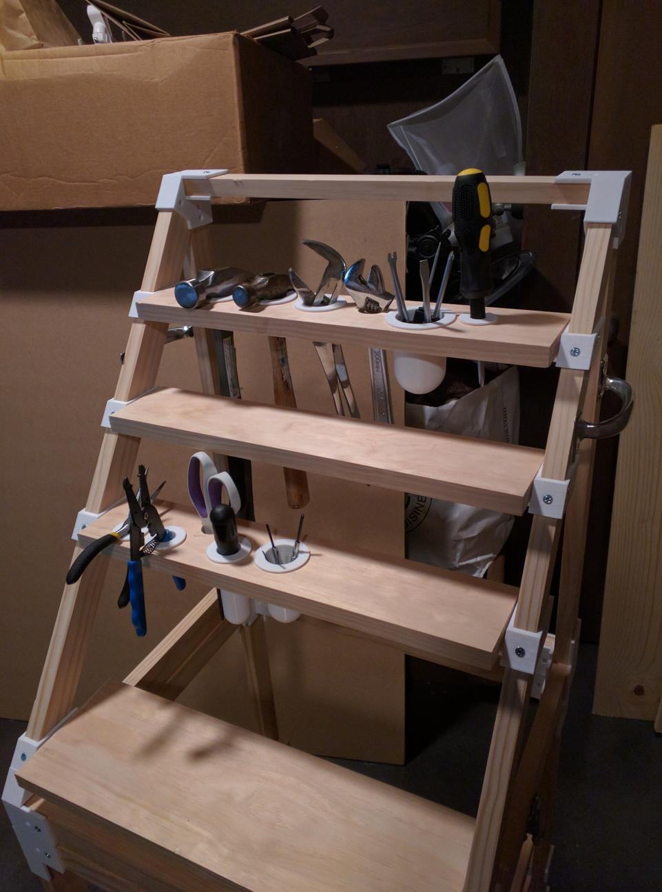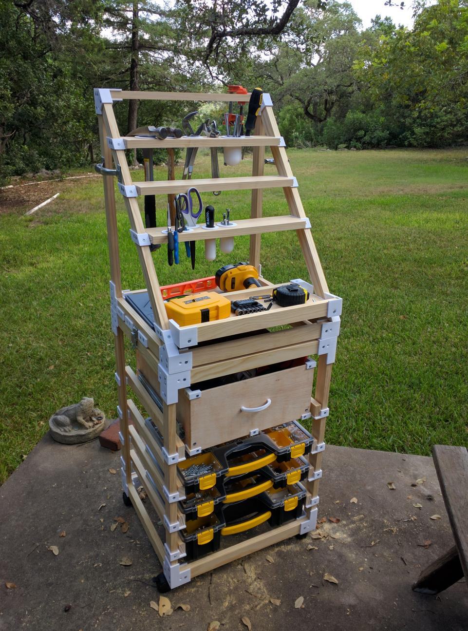 I've been wanting a tool cart with exposed tools ever since I saw Adam Savage's Tool Storage Stands, and it seemed like the perfect project to test the 3D printed joints I've been working on. As with many of my projects, this wasn't fully planned from the beginning, but rather evolved as I worked on it.
