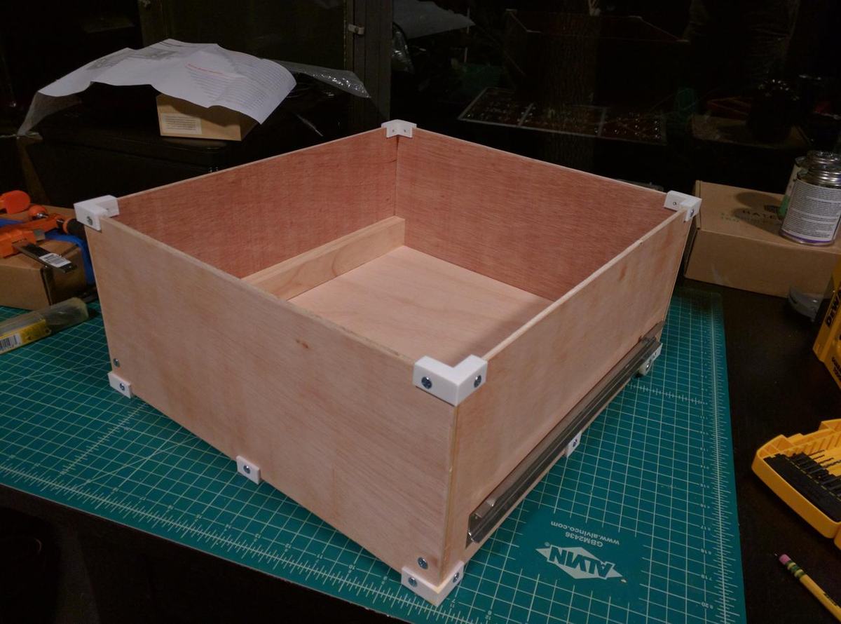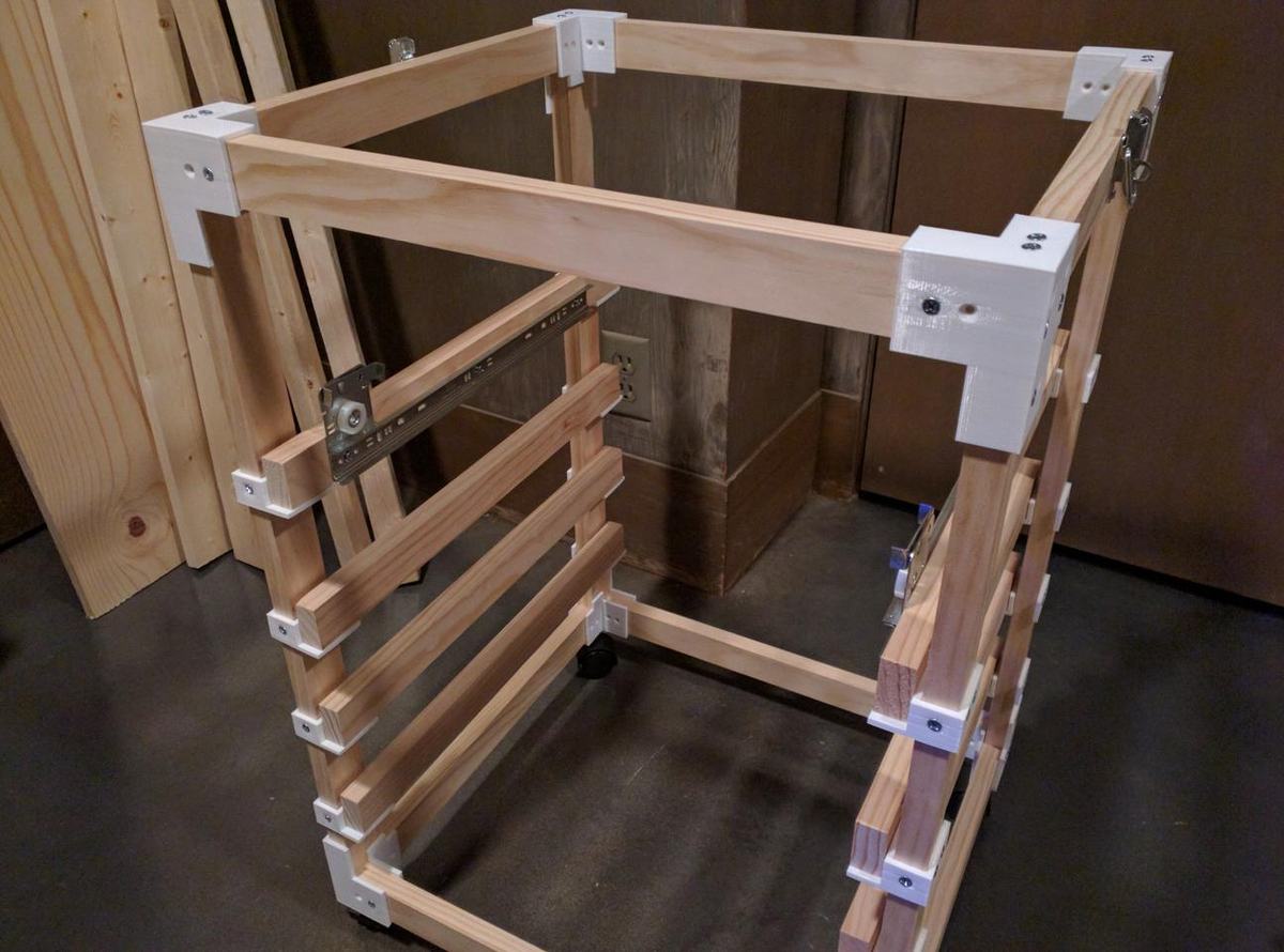 At this point I was pretty close to being finished, but I decided I wanted a drawer in the extra space in the bottom frame. Of course I had to build the drawer with 3D printed joints as well.