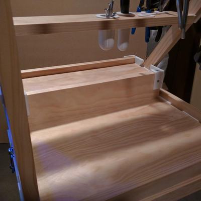 I printed a handle for the drawer, and called it complete. I still have room to add more tools, and at some point I'd like to add better casters, but It's very functional in its current form.